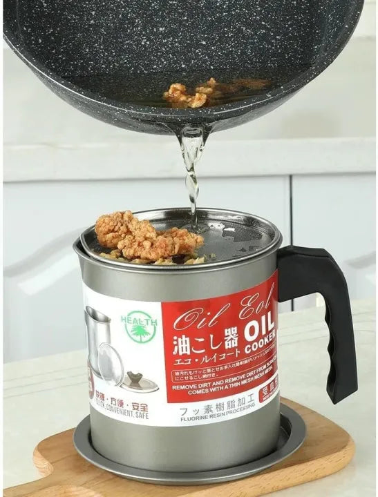 Keep your cooking oil clean and reusable with the Oil Filter Cooker Pot! Made from high-quality stainless steel, this pot features a built-in strainer to filter out food particles, ensuring healthier and longer-lasting oil. Its heat-resistant handle, non-drip spout, and secure lid make it a must-have for any kitchen. Perfect for filtering, storing, and reusing cooking oil effortlessly.